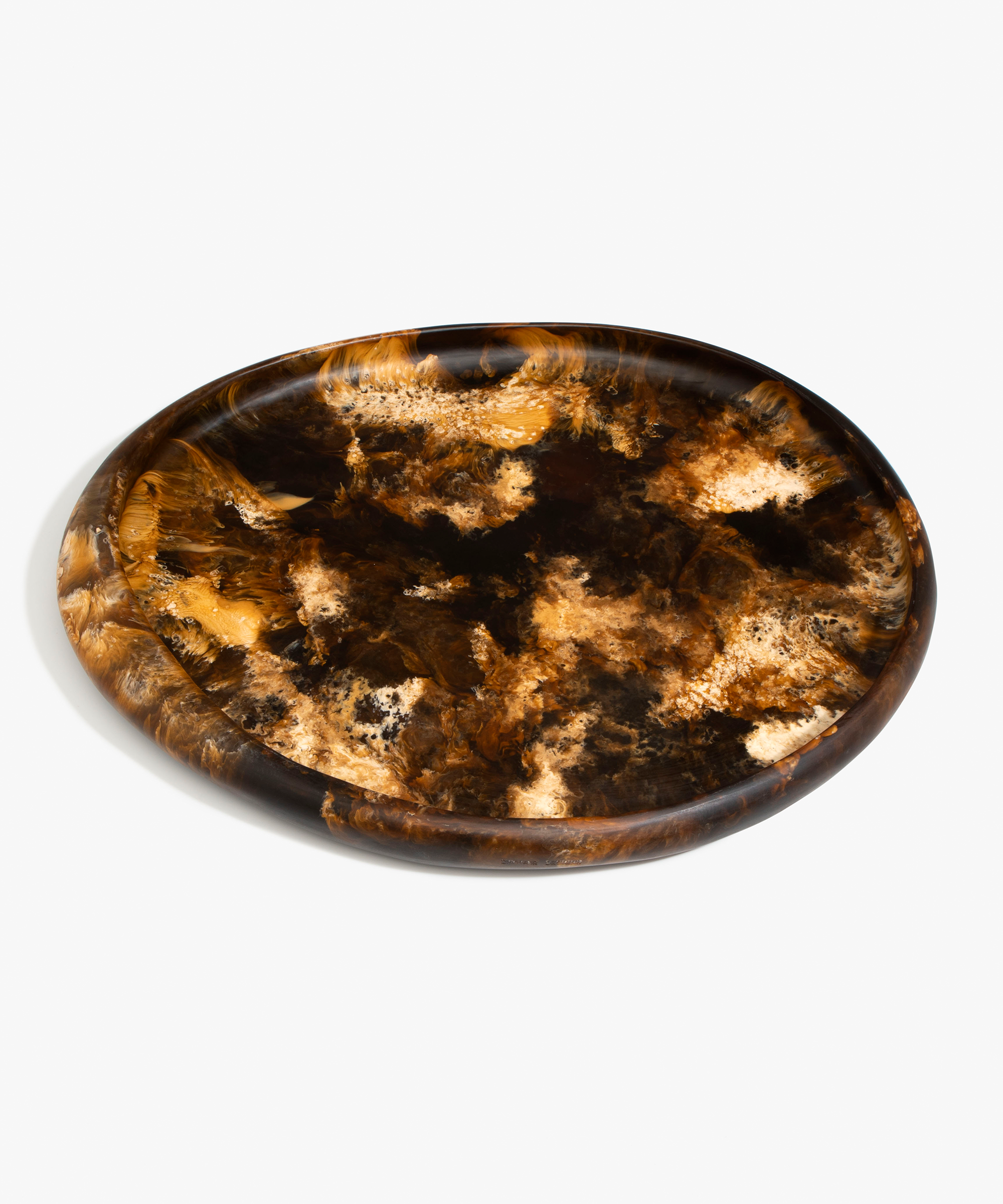 Our homewares are suitable for cold food only. These pieces should be hand washed in warm water. Resin may appear frosted after washing and should be rubbed with a drop of cooking oil to restore sheen. All resin pieces are strong and durable but should be treated like a ceramic and are not shock-absorbent and can break if dropped or knocked against a hard surface. Resin is not fire resistant and so should not be used in an oven, a microwave, or used as candleholders or ashtrays.