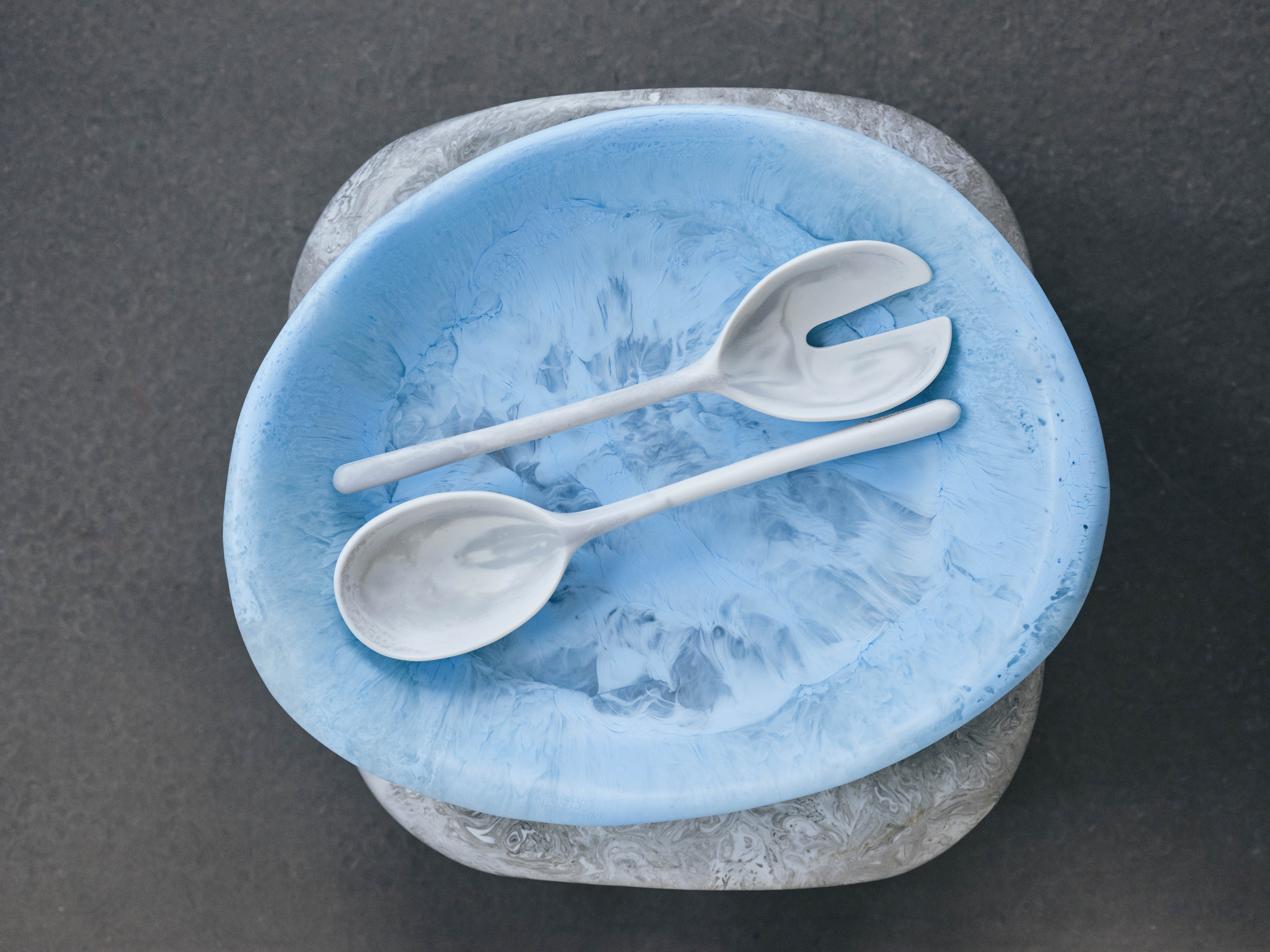 Our homewares are suitable for cold food only. These pieces should be hand washed in warm water. Resin may appear frosted after washing and should be rubbed with a drop of cooking oil to restore sheen. All resin pieces are strong and durable but should be treated like a ceramic and are not shock-absorbent and can break if dropped or knocked against a hard surface. Resin is not fire resistant and so should not be used in an oven, a microwave, or used as candleholders or ashtrays.