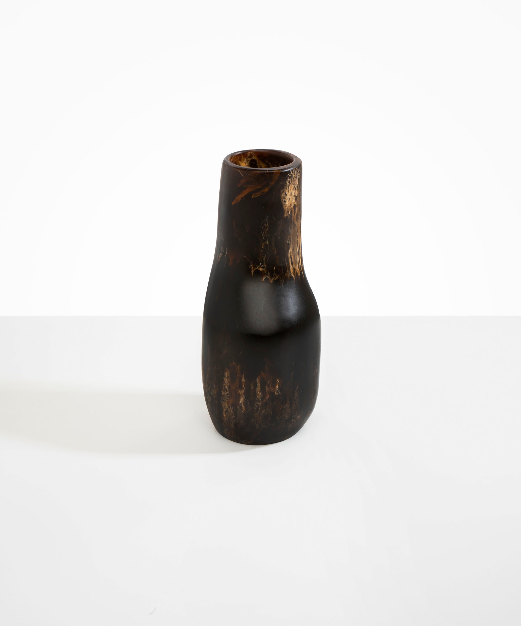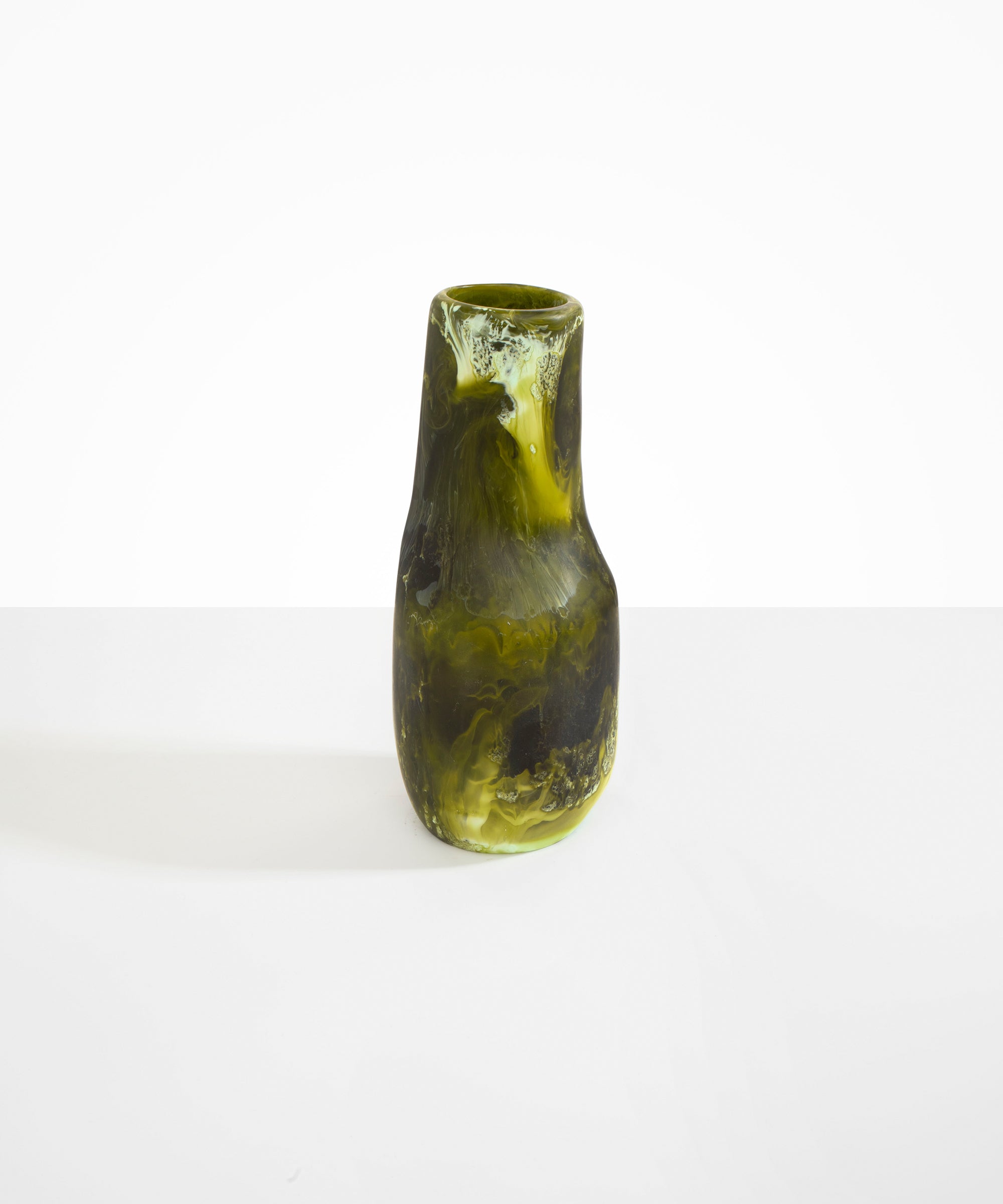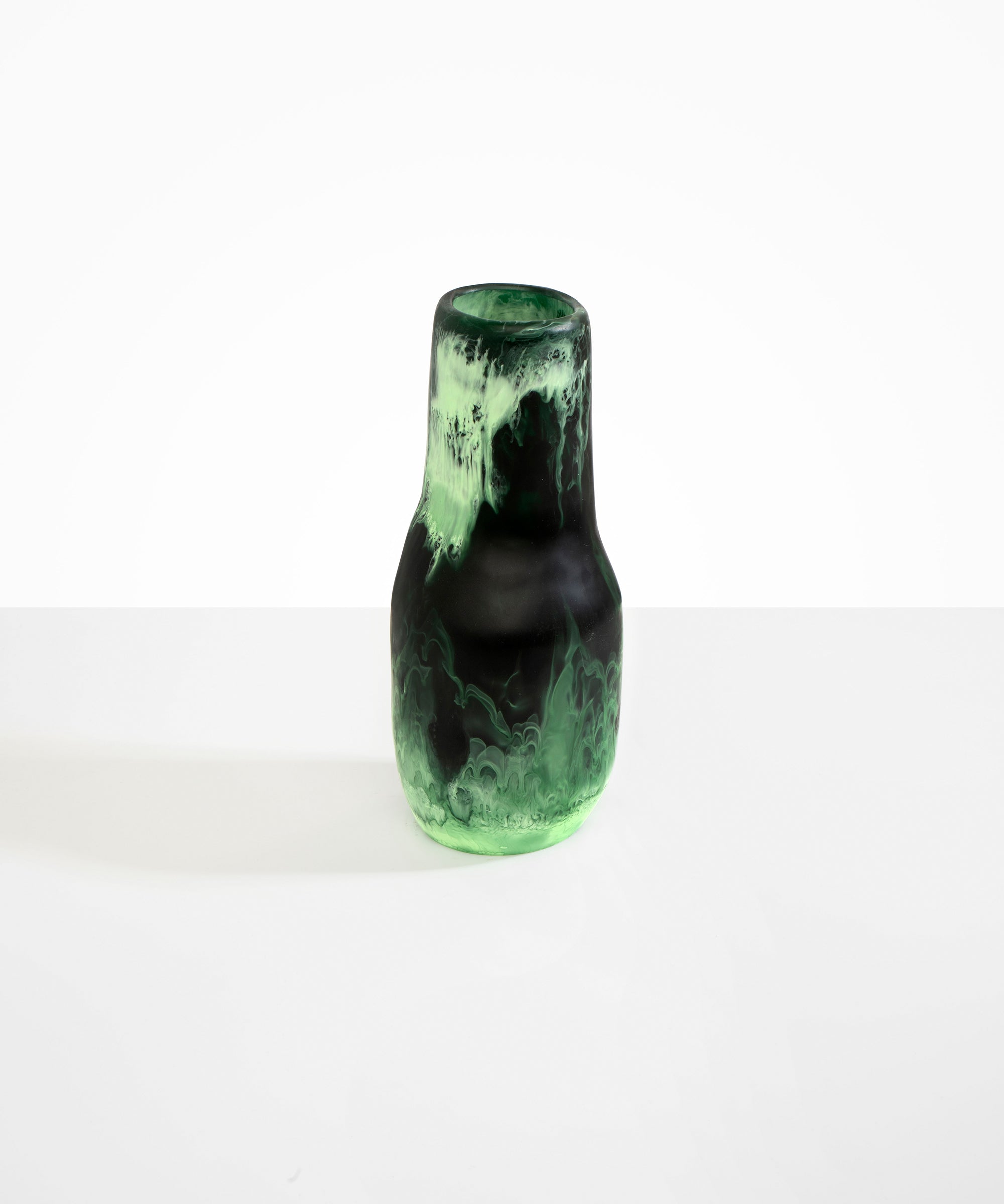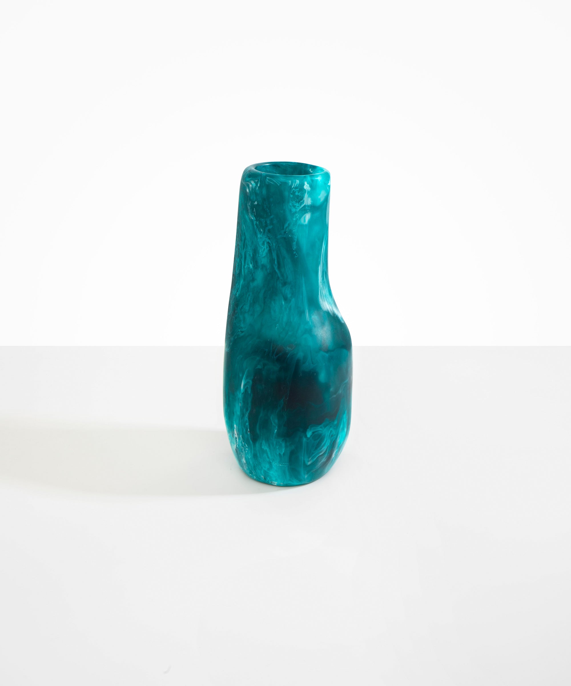 The Studio Vases draw inspiration from within the artist’s studio, tracing the light that falls across objects in the space. Rendered in textural resin castings, each piece is a study in curvilinear forms, characterised by their elongated neck and flared base.