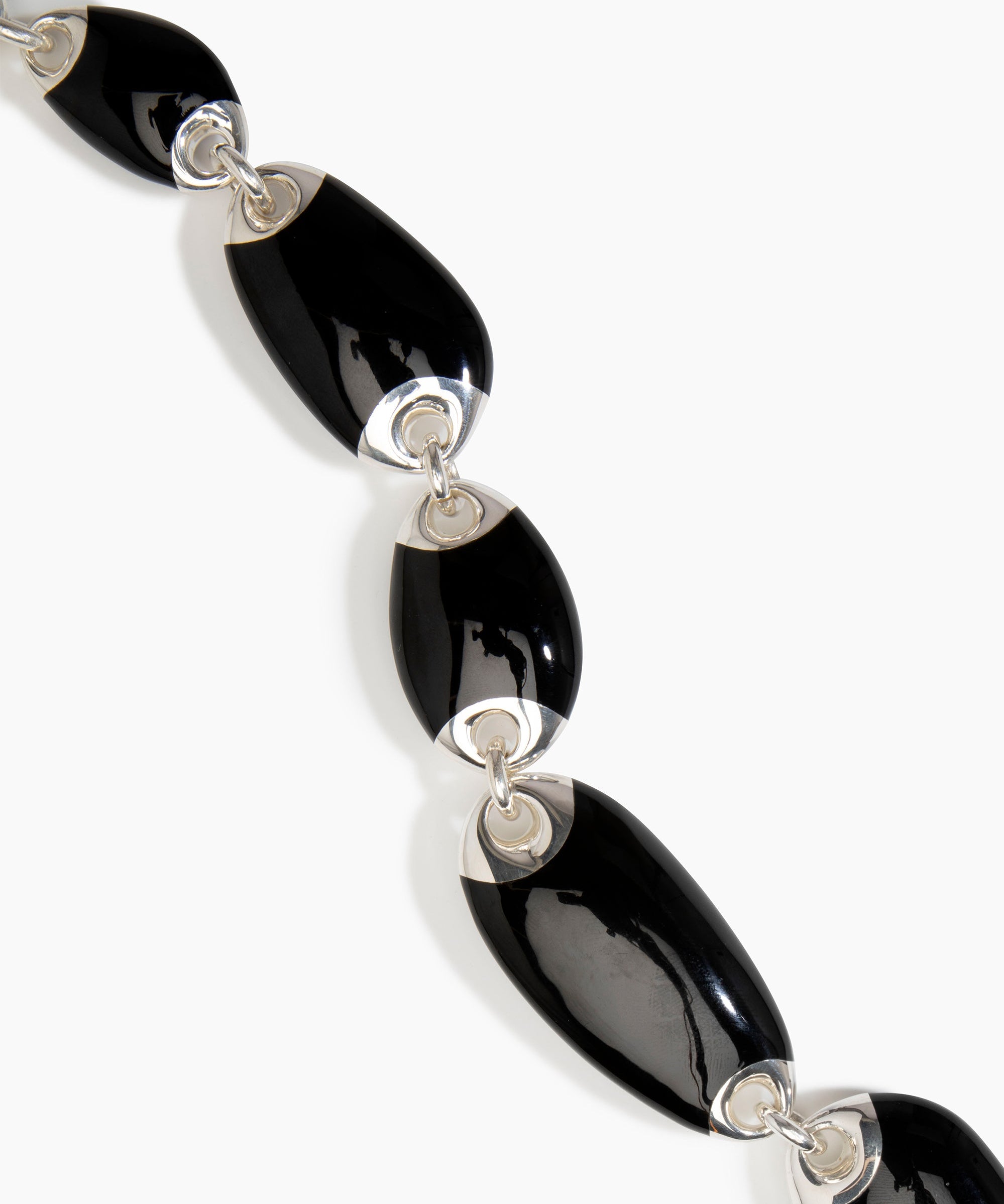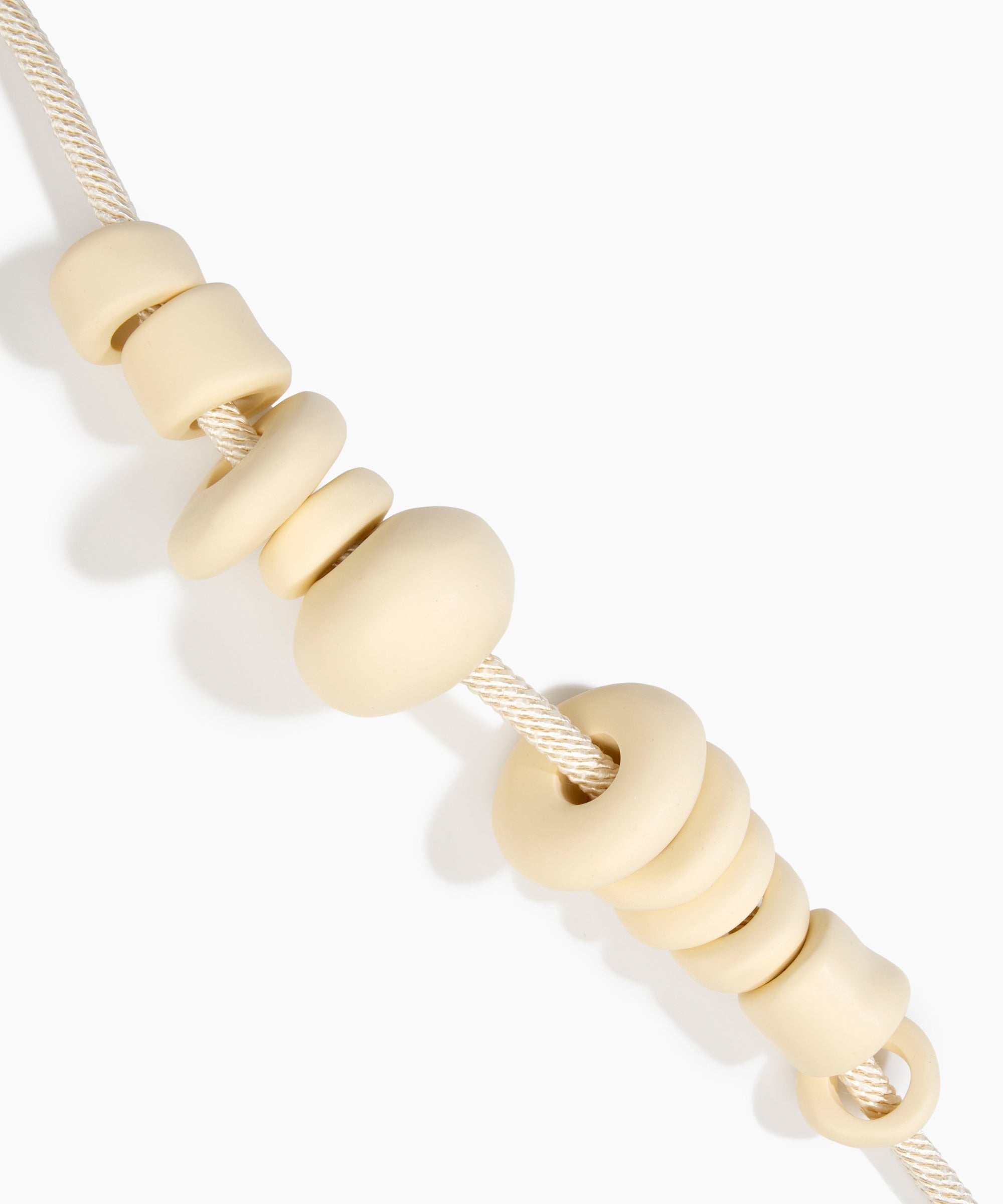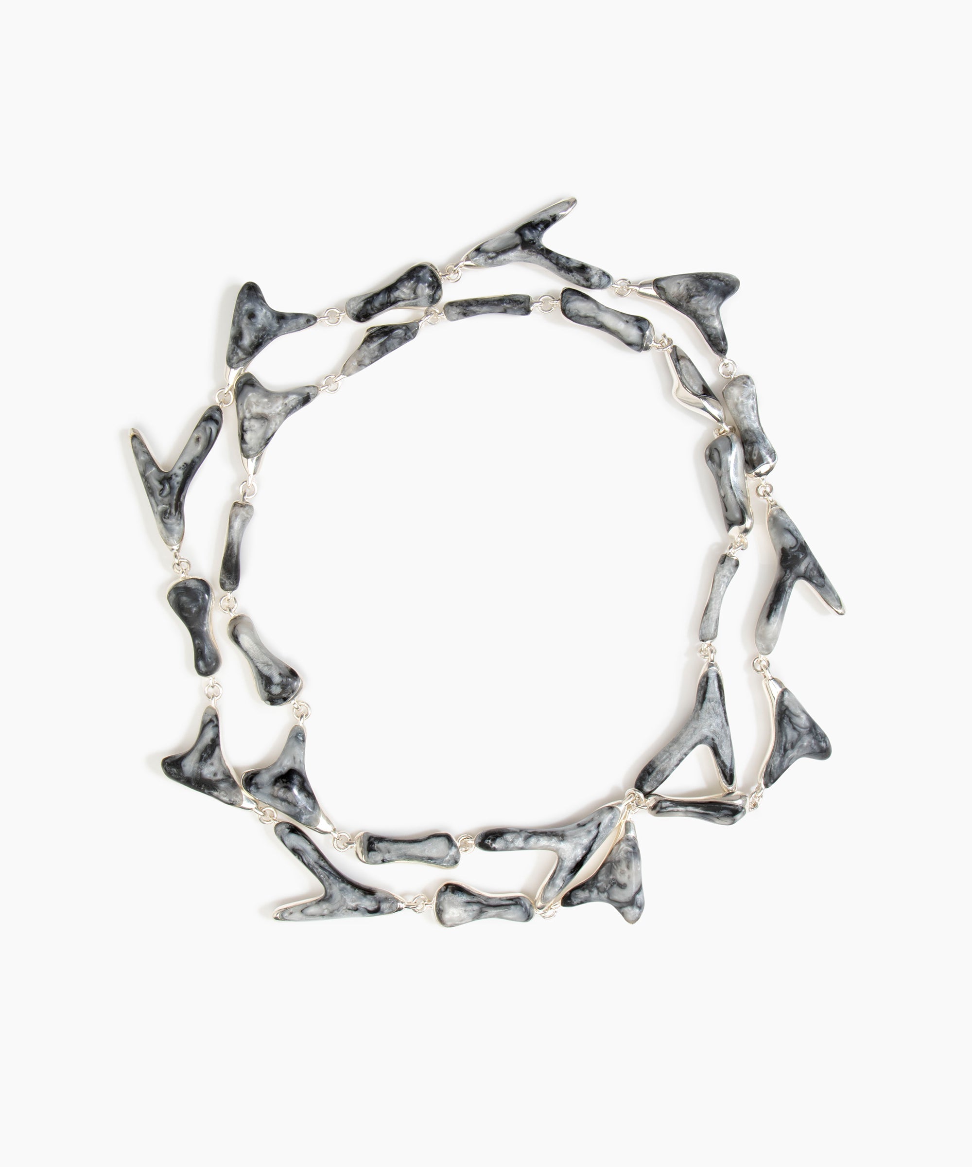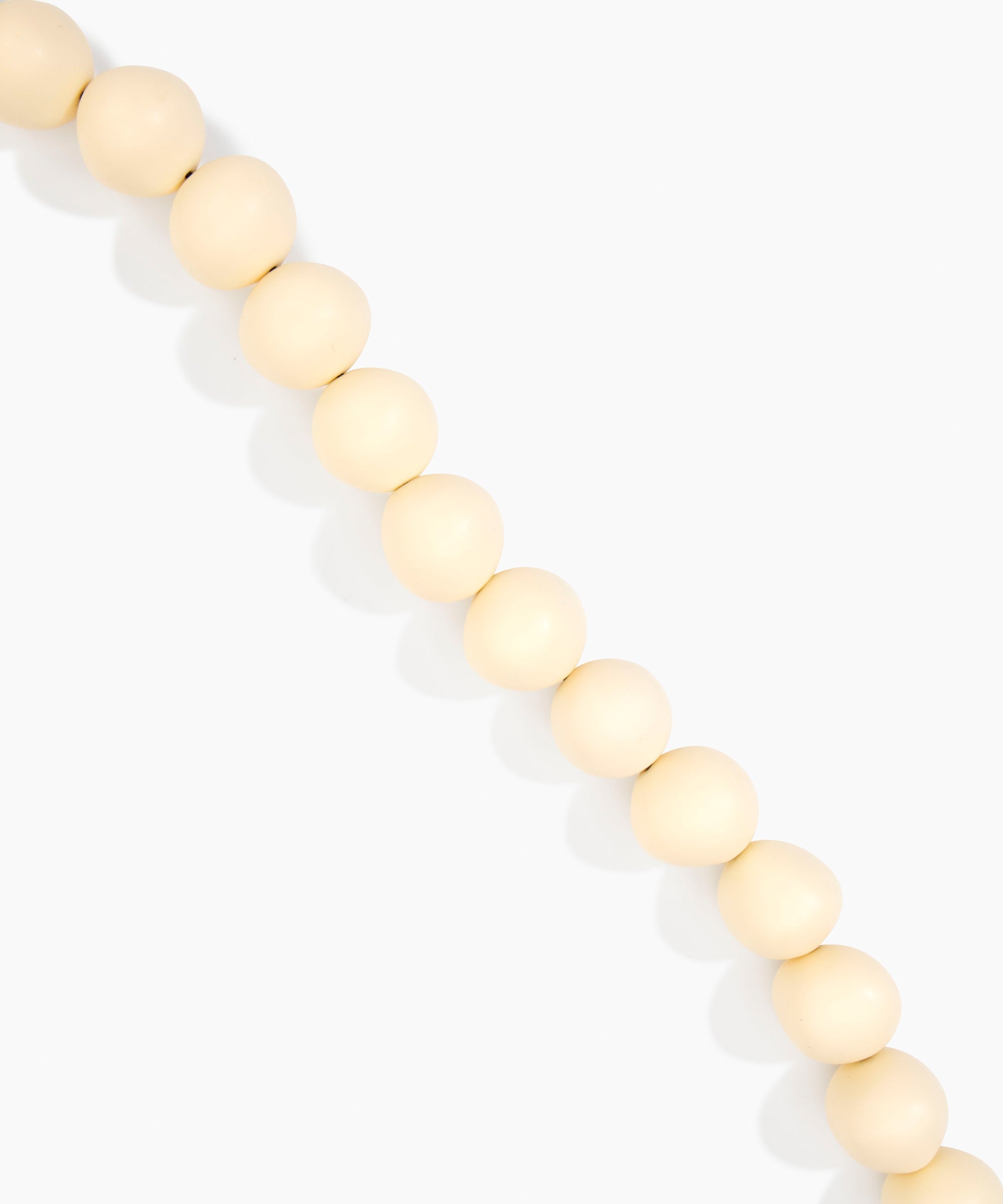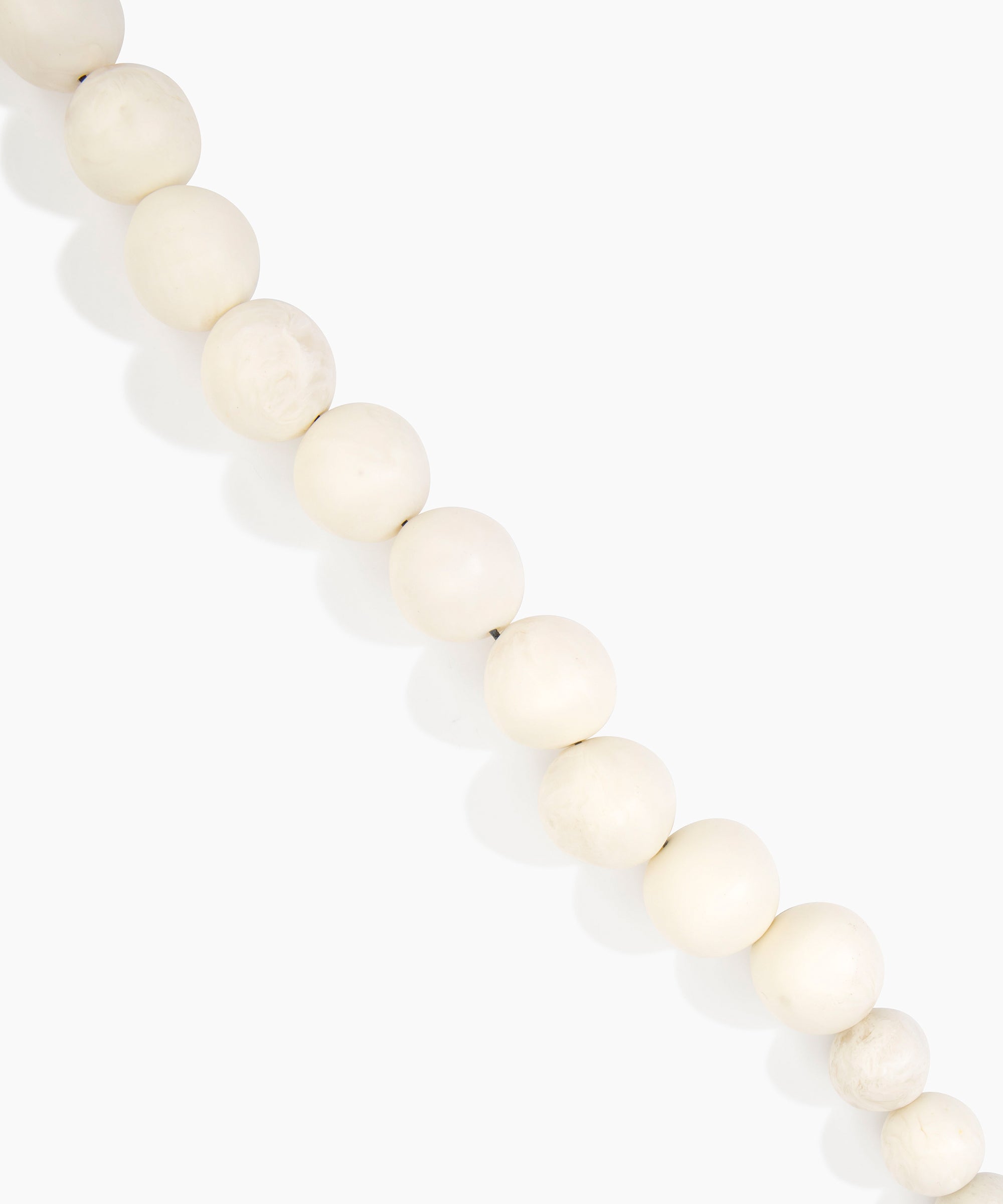 The Organic Ball Choker is strung with hand-finished resin beads, graduating from small to large for a dynamic effect. Each bead reflects the handmade nature of the choker, with natural spherical formations finished to a matte or polished finishes. The choker sits comfortably at the collarbone and is secured with a metal toggle-style clasp detail for confident wear.