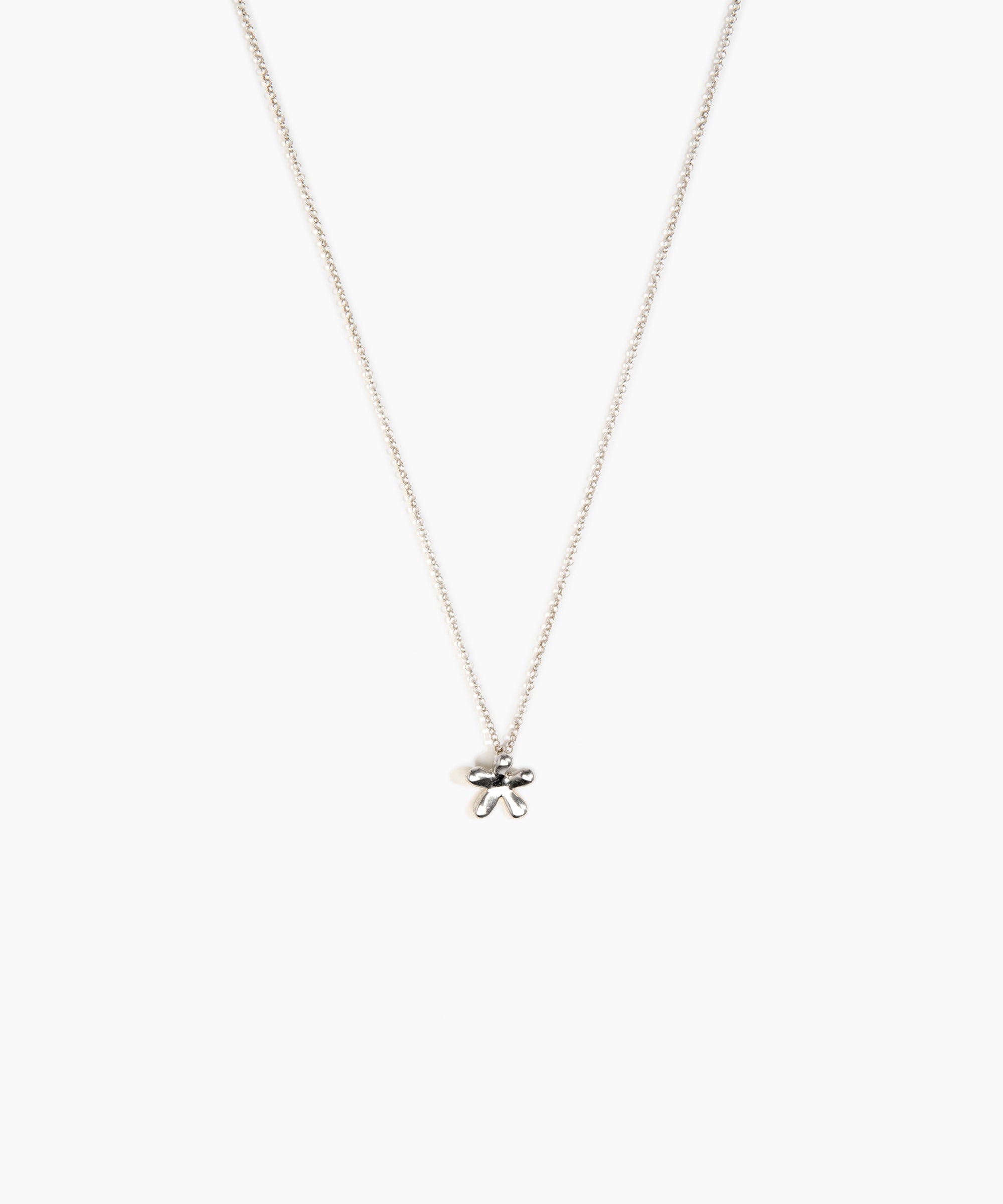 The Daisy Pendant showcases a daisy-shaped bead, in nano-coated brass. The daisy motif delicately threads a metal chain, with a DD logo tag at its tail end. Available in Nano-Coated Brass, and Silver-Plated Brass.
