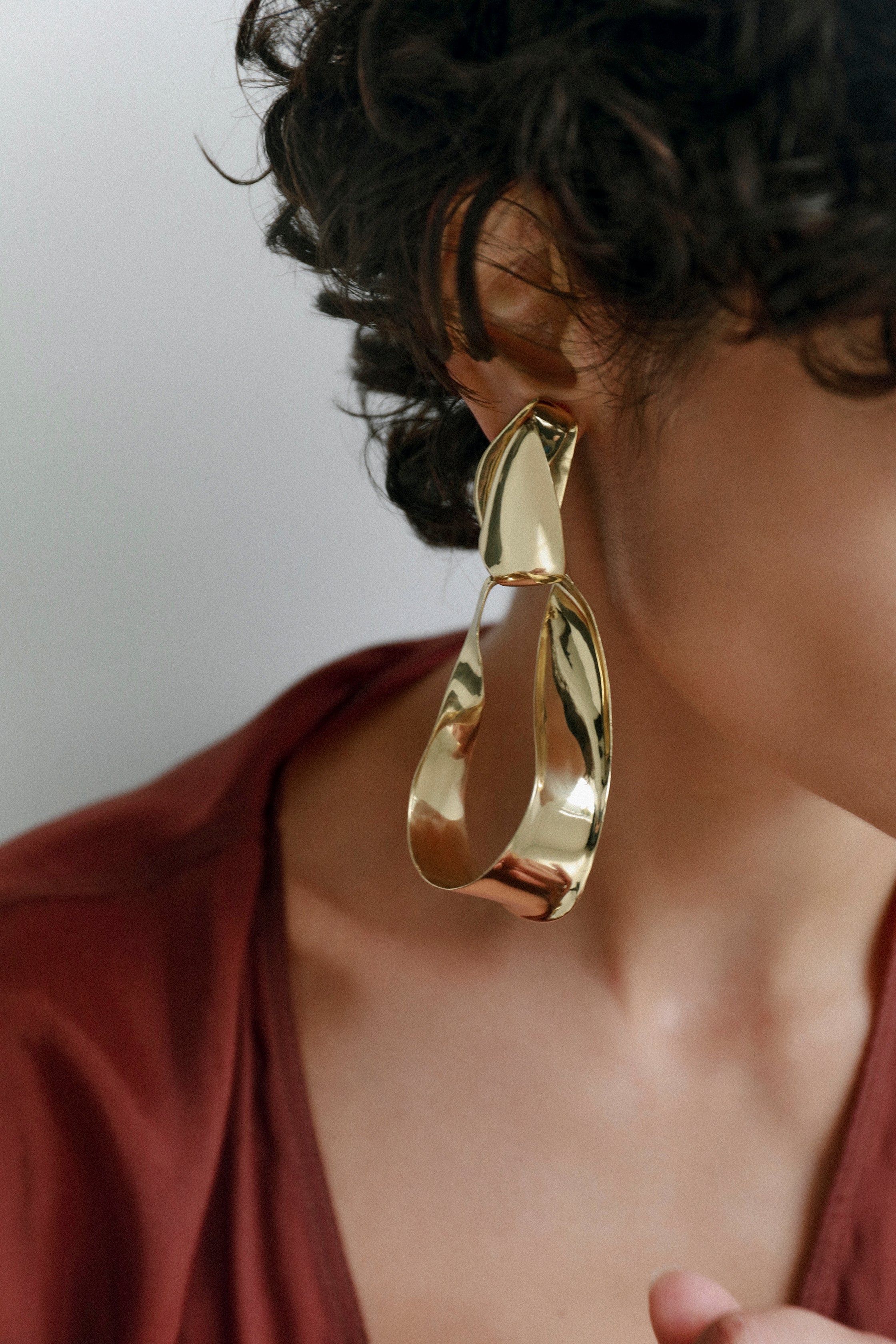 Captivated by the beauty of Apulian olive trees, the Olive Leaf Drop Earrings showcases the organic curves of olive-leaf shapes, embodying the essence of the Mediterranean and an expression of summer's spirit. The largest in scale of the series adds sculptural effect to evening dressing. Available in Nano-Coated Brass, and Silver-Plated Brass, with clip-on closure.