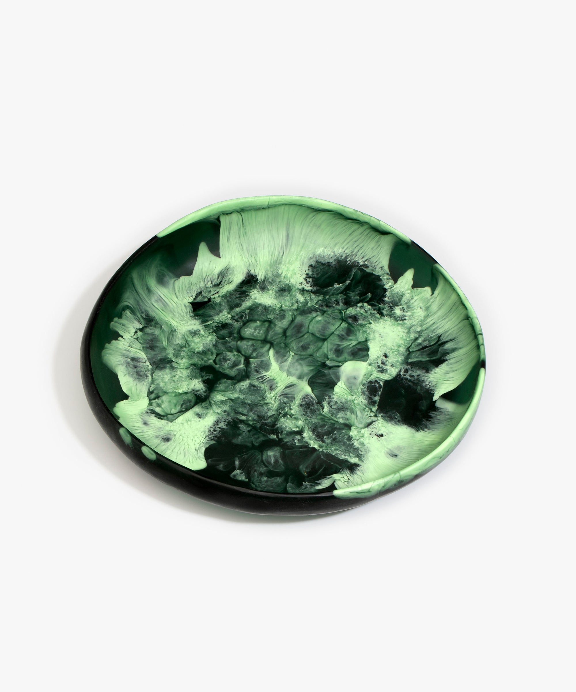 Our homewares are suitable for cold food only. These pieces should be hand washed in warm water. Resin may appear frosted after washing and should be rubbed with a drop of cooking oil to restore sheen. All resin pieces are strong and durable but should be treated like a ceramic and are not shock-absorbent and can break if dropped or knocked against a hard surface. Resin is not fire resistant and so should not be used in an oven, a microwave, or used as candleholders or ashtrays.