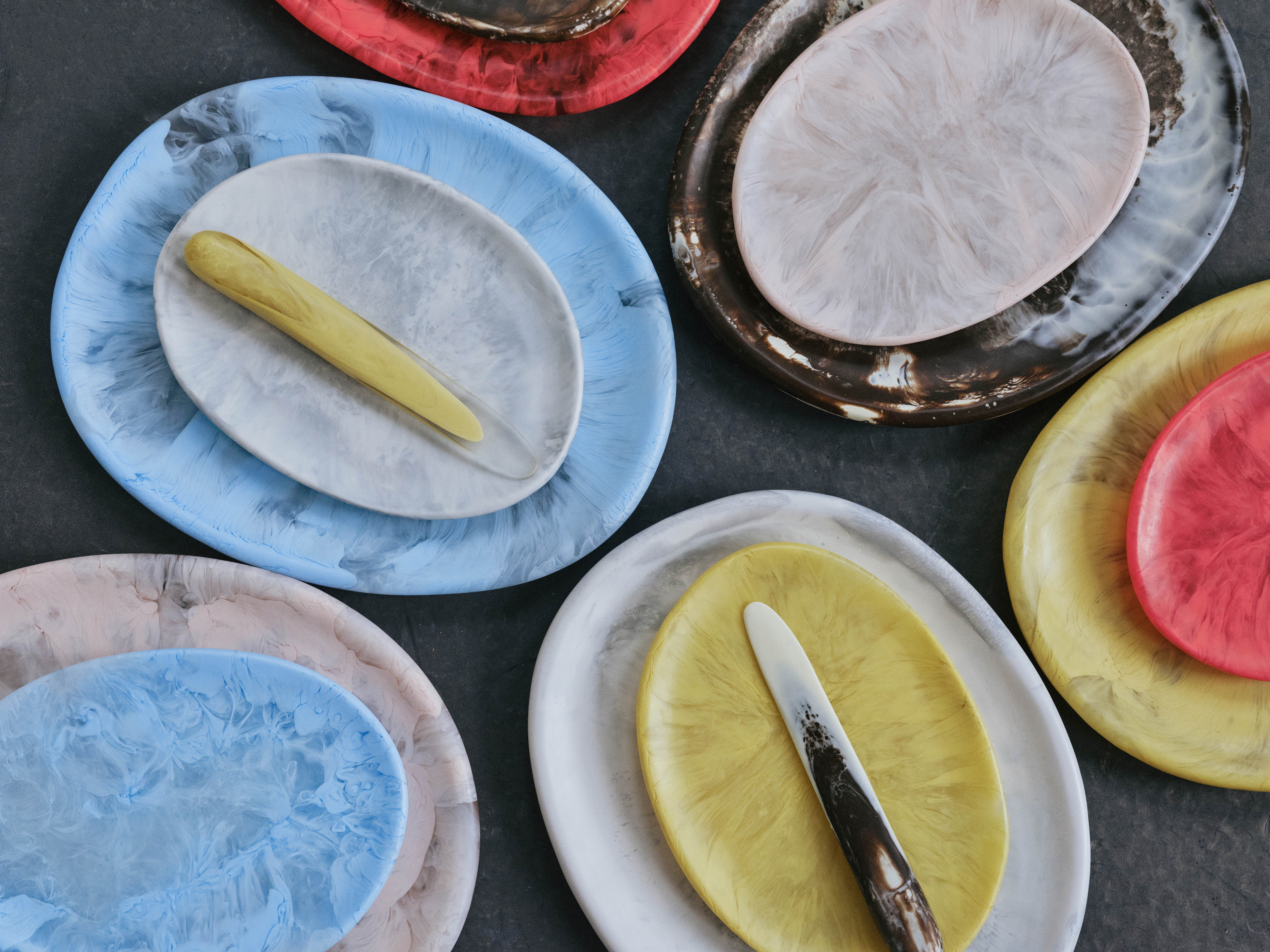 Our homewares are suitable for cold food only. These pieces should be hand washed in warm water. Resin may appear frosted after washing and should be rubbed with a drop of cooking oil to restore sheen. All resin pieces are strong and durable but should be treated like a ceramic and are not shock-absorbent and can break if dropped or knocked against a hard surface. Resin is not fire resistant and so should not be used in an oven, a microwave, or used as candleholders or ashtrays.